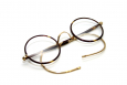 Genuine antique eyeglasses frame in NEW old stock, hardly used and as new condition. This model is made of gold filled metal and the lens holders and temple arms are clothed with brown celluloid Windsor rim covers in a tortoise shell pattern.
