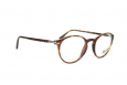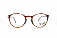 Acetate panto eyeglasses, hand made in Italy. The brand is Persol and the model number is 3174, color code 24 which is browns in a tortoise shell pattern.